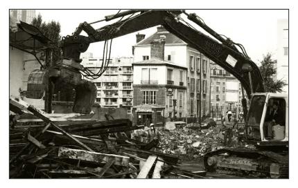 A l'angle de la rue de la Marne et de la rue de Thionville, la chaufferie de la CPCU est mise à terre.